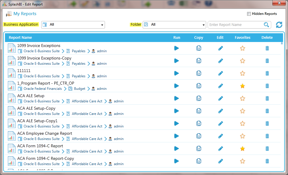 2) User can create a report by creating a table in particular connection and domain by writing SQL.