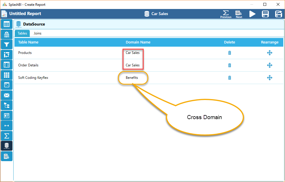 2) In data source tab, user can see the join details from different domain based on the report columns.